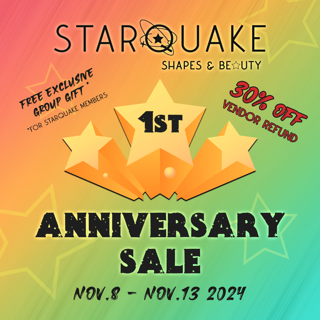So spoopy month has ended and I’ve got news about upcoming parties and other fun stuff but before I get to that I wanted to bring back a little mini-feature on Second Life stores which support our community. Oh and it just happens to be a year since our new moderator Theo opened their store starQuake: Shapes and Beauty!
