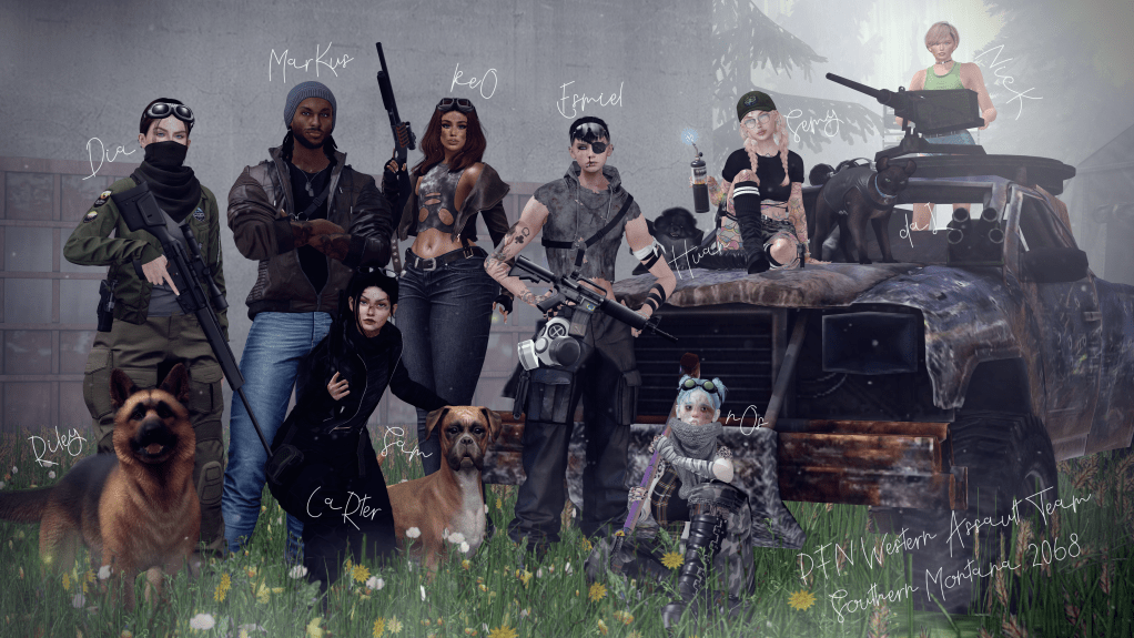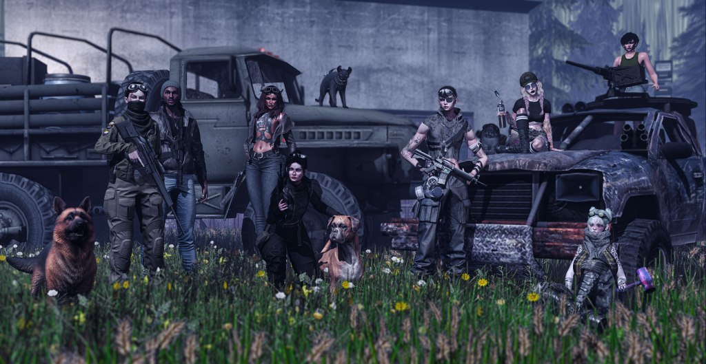 Last month Dia built a temporary sim called “The Aftermath” which was open for everyone to explore, roleplay, and take pictures at. Above is a group photo taken by Esmi on the 8th of December – see who you can spot there π – but I’ll also share some others below: