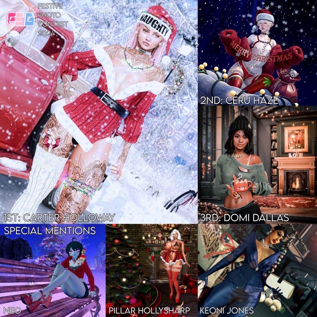 First, second, and third scooped prizes of L$1000, L$750, and L$500 respectively whilst the special mentions all received L$250; oh and of course the winner gets the coveted “spot on the wall” at the Femboy Penthouse alongside all of our other photo contest winners! Here are the winners’ pic in full size though plus some words from Dal.