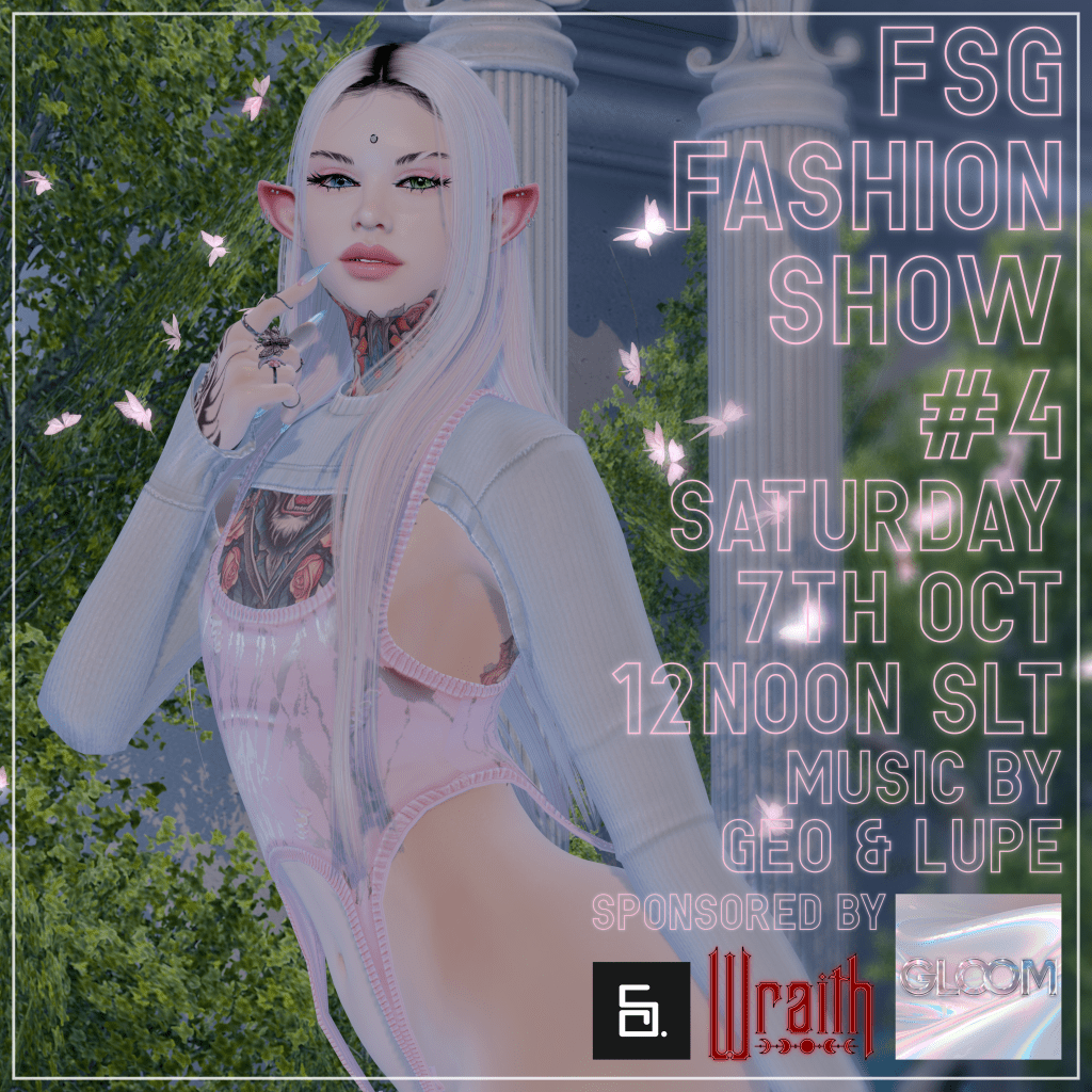 Our 2024 FSG Fashion Show took place on Saturday the 7th of September; kicking off at 12pm SLT. The unique show build – created by Esmi – was hosted at the Blacklist Bunker beach and they gave us their Saturday party slot for the event; so a big thanks to Daxia, Lupe, London, and the Bunker crew – the show wouldn’t have happened without their support! We also had wonderful tunes throughout the whole 3 hours (at least I’m guessing it was around that long 😛 ) from Blacklist and FSG DJs Izzy and Geo; who of course were both amazing.