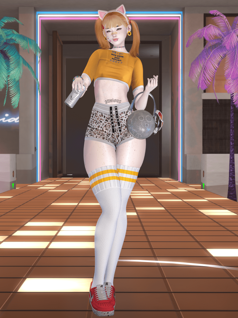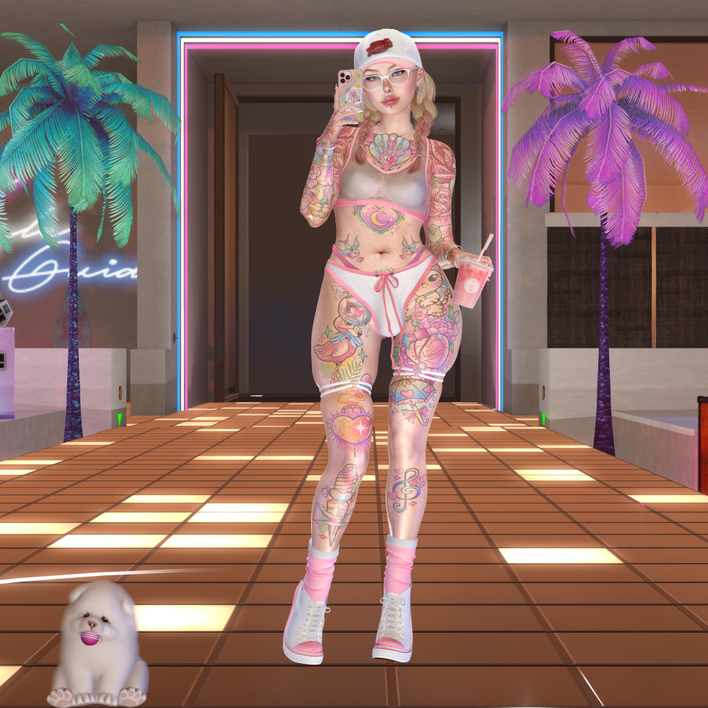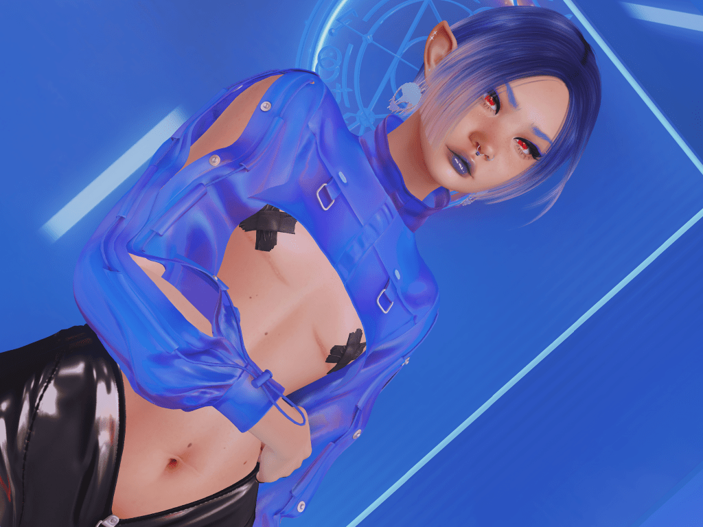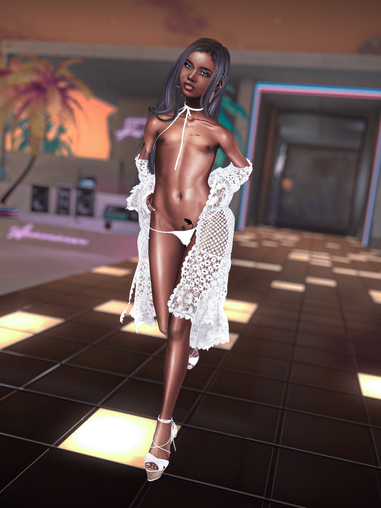 Dal is wearing Appetite’s Clo crop top and E-Seni shorts having chosen colours from their fatpacks. Dal has also chosen Koba glasses from sacredsquare, Winry Lippy gloss by starQuake, and GeoZ’s Moon bag.