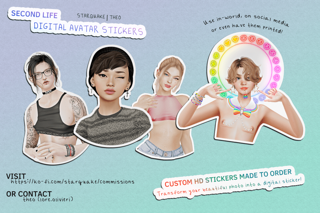 Our final show sponsor was starQuake Shapes & Beauty who make a range of avatar make-up and other beauty items (plus custom made avatar stickers). Ohh and you can find their in world store next door to FSG!